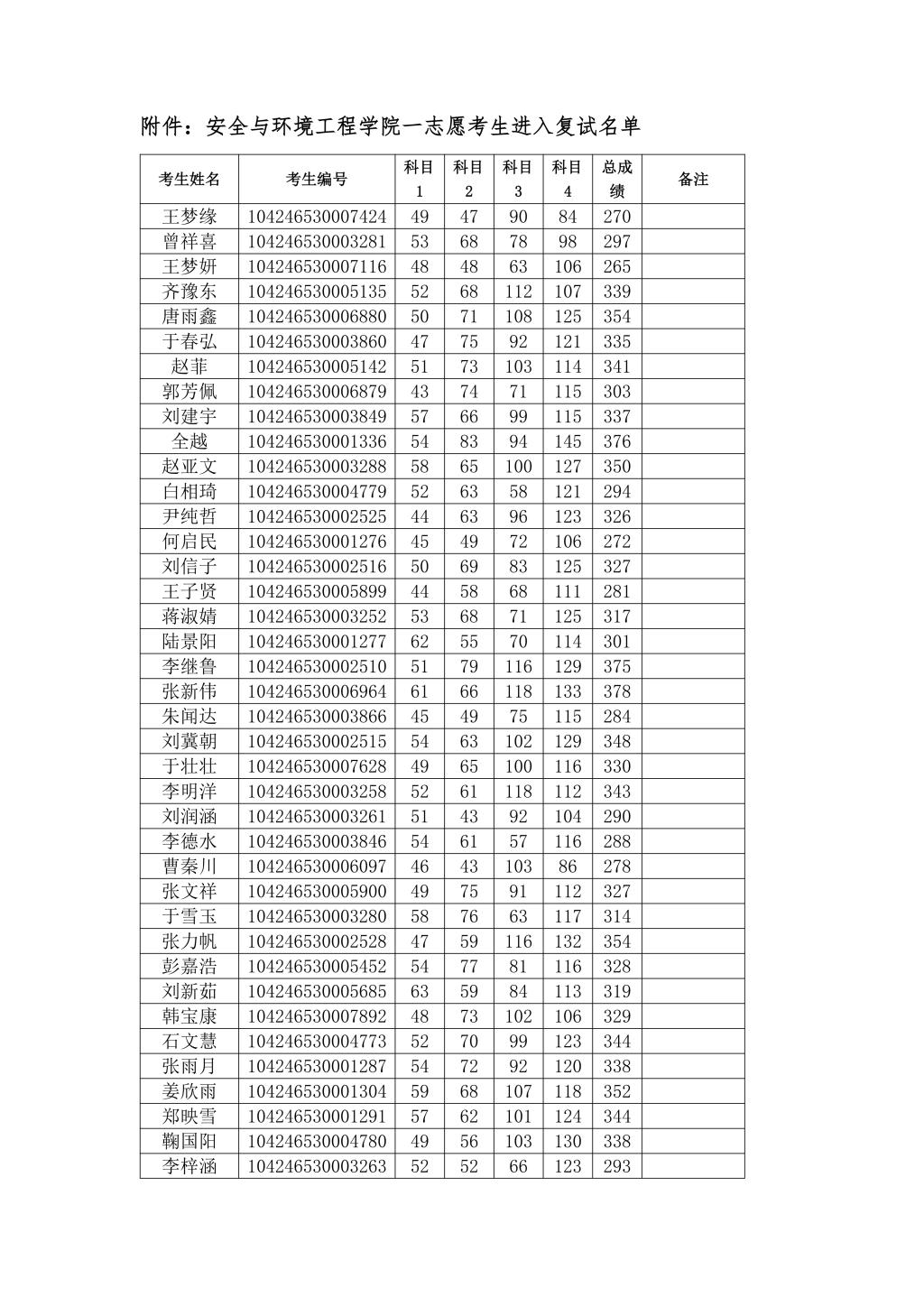 根据复试分数线,一志愿复试考生名单详见附件。