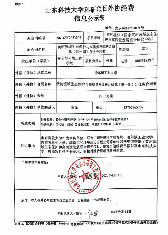 山东科技大学横向科研项目外协经费公示信息
