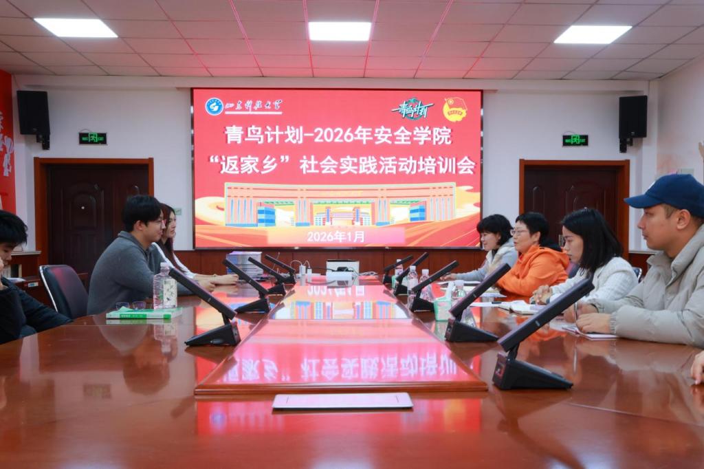 点击:为深入引导青年学生在服务家乡建设的生动实践中“受教育、长才干、作贡献”,进一步做好学院本科招生宣传工作,1月16日,h视频 于J9-223举办“青鸟计划”2026年“返家乡”社会实践活动培训会。h视频 副院长刘音、团委书记张娜、团委老师李翊尘、刘雨池出席此次培训会,会议邀请2024级郑琪、王婧茹、聂文慧三位优秀返家乡宣传代表分享宣讲经验,广大安全学子积极参与,会议由李翊尘主持。